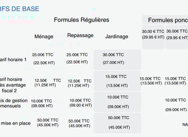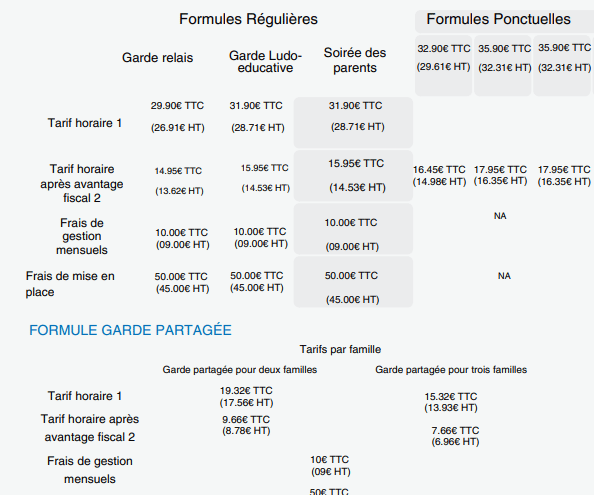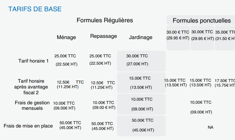 Notre grille tarifaire